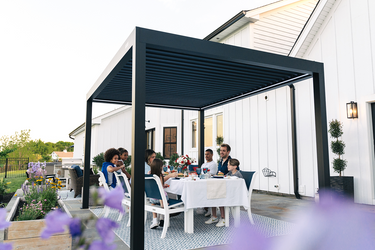 Med en PERGOLUX-pergola forvandles hagen eller terrassen til et bruksrom – uansett vær – og hjemmet ditt blir et naturlig samlingspunkt.