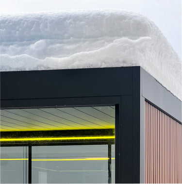Designet for å brukes året rundt. Med glassvegger kan du lukke pergolaen din og nyte utelivet — selv på kalde dager.