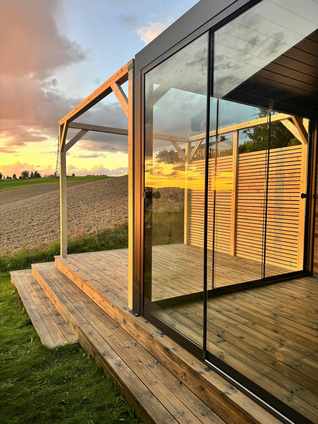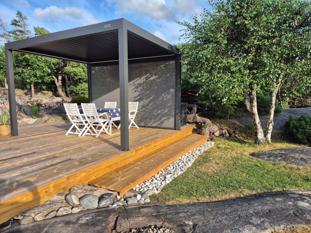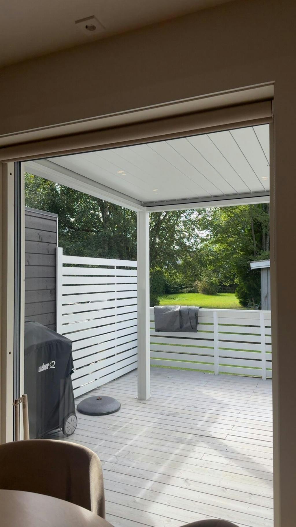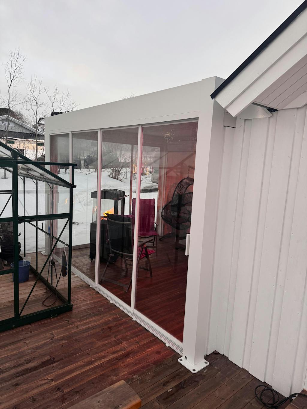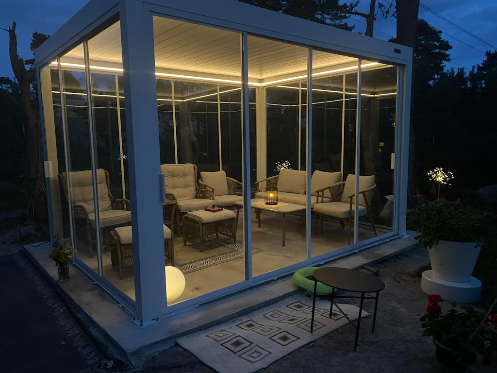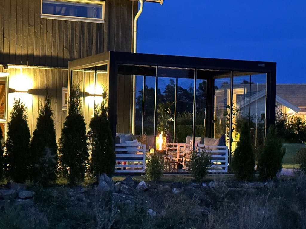 Etter at vi først satte opp pergolaen om sommeren og kunne overbevise oss selv om kvaliteten, har vi nå kjøpt en fast glassvegg. Vi er begeistret over hvor godt gjennomtenkt alt er og at du kan legge til flere tilbehør når som helst.