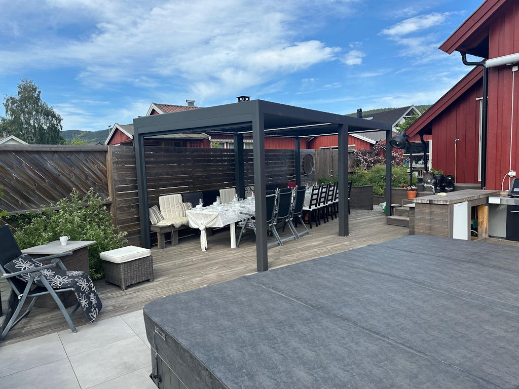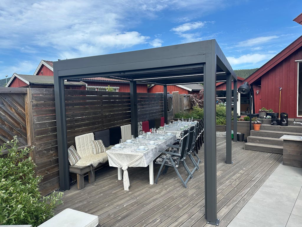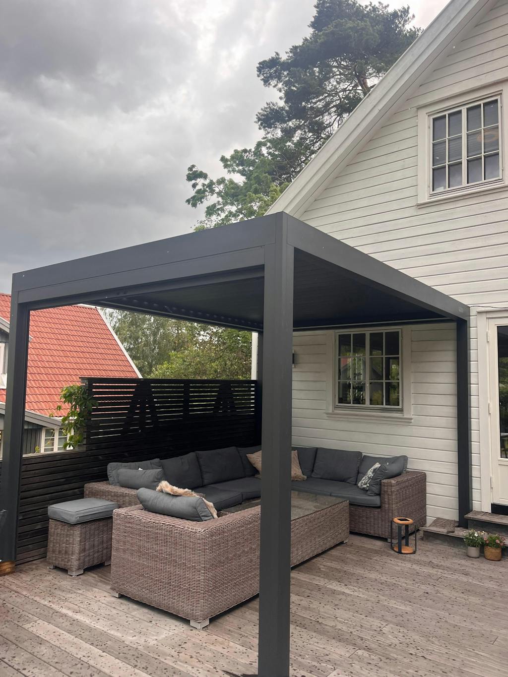 Pergolaen oppleves som et kvalitetsprodukt som bidrar til å heve uteplassen. Vi valgte å bygge sammen 2 stykker for å få dimensjonen vi ønsket og det fungerte fint. Produktet som helhet er jeg veldig godt fornøyd med, men skulle gjerne hatt muligheten til å velge lys med 2700K fargetemperatur i stedet for 3000K, da det ville gitt et varmere og mer behagelig lysmiljø.