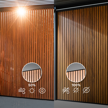 PERGOLUX sin Aluminium Spilevegg forvandler pergolaen din fra et åpent uteområde til et beskyttet tilfluktssted som du kan nyte hele året.