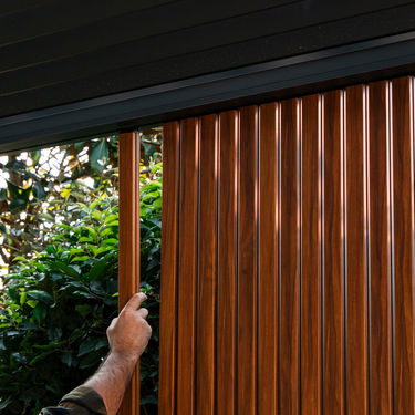 De faste lamellene gir et varig privatliv og beskyttelse, mens den rosentre-inspirerte overflaten gir uteområdet ditt treets naturlige varme – uten ulempene med ekte tre.