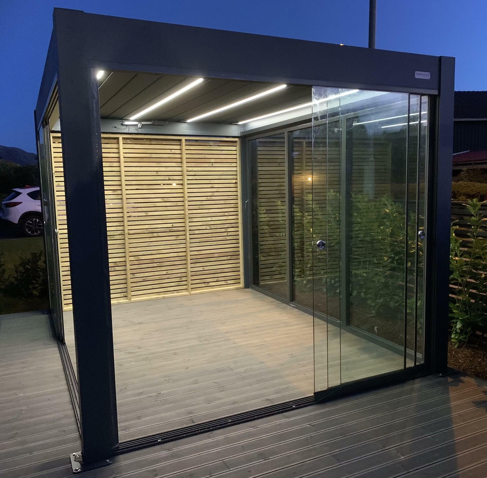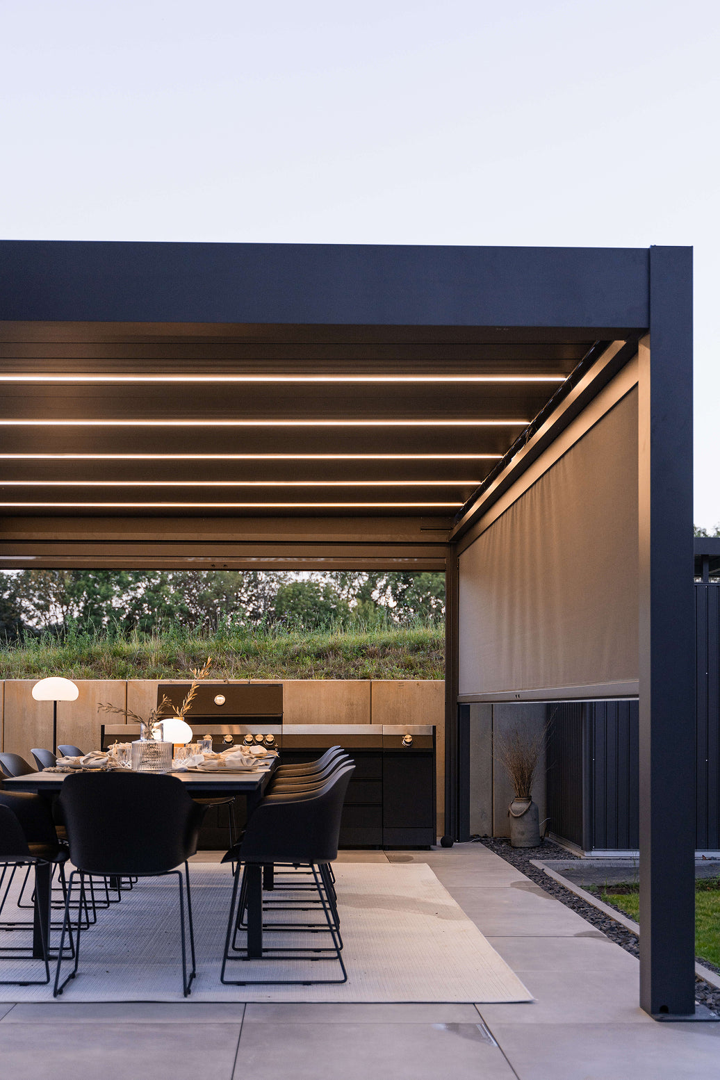 PERGOLUX Skydance er svaret pÄ mange av vÄre kunders Þnsker; lukseriÞst design, integrert LED-belysning og elektrisk justerbare lameller.